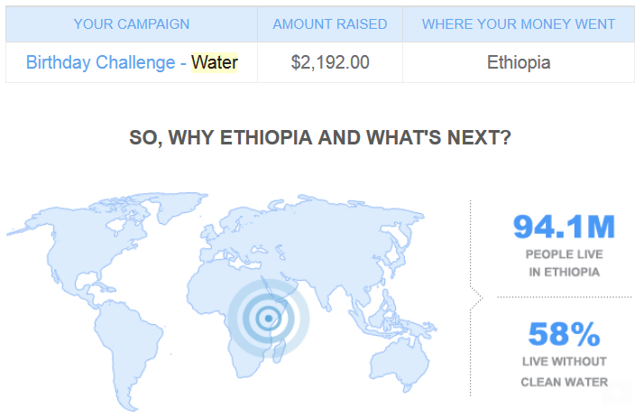 One reason I chose charity: water for my campaign is because of the unique way they function as an organization. 100% of every dollar we raise will directly fund water project costs. And when the project we help fund in complete we will get a report like this.